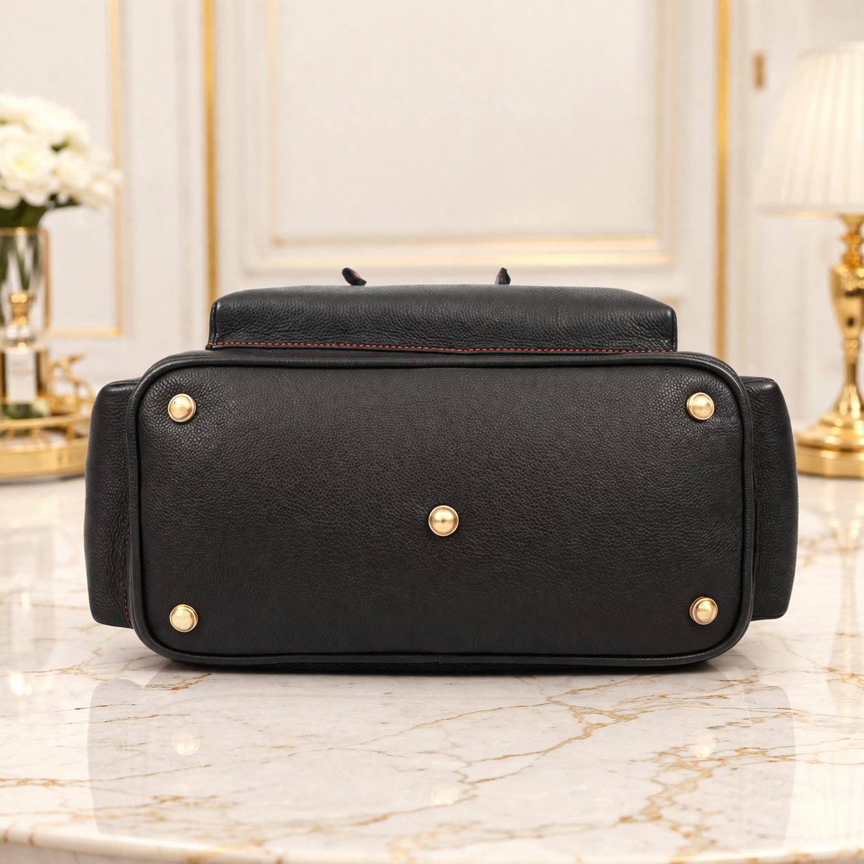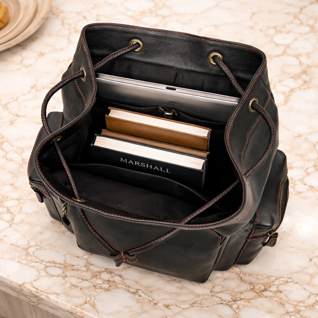 Upgrade your everyday style with this premium black genuine leather backpack, designed for modern professionals and travelers. Featuring elegant red contrast stitching, this backpack combines luxury aesthetics with practical functionality.